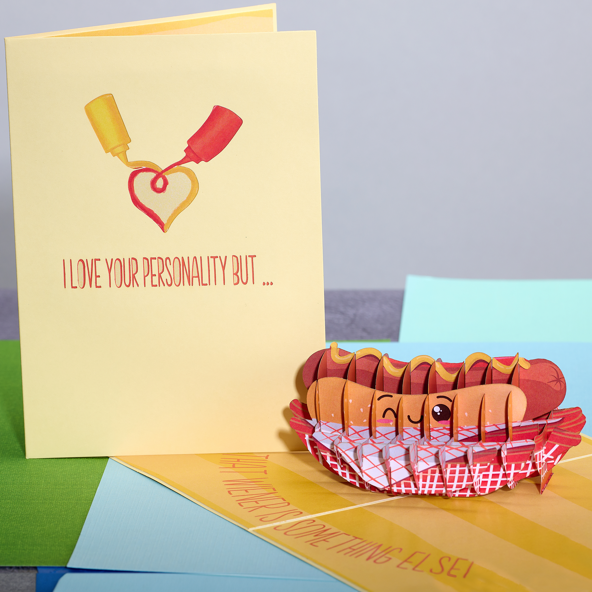 - Inside of card: Pop up hot dog with text, “that wiener is something else”