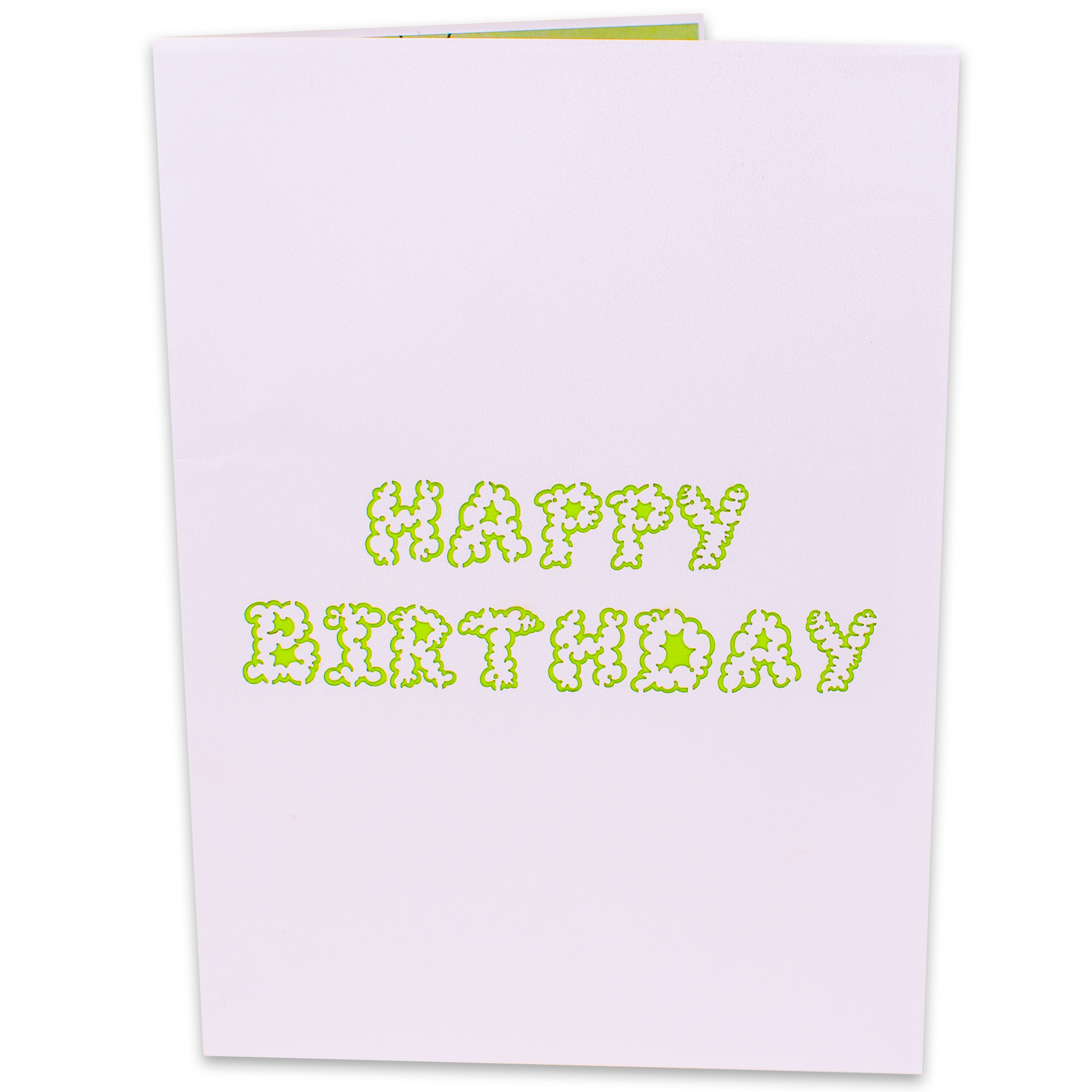 When they open this 3D joke card, a nasty old man drops his old man pants. He then fires off a toxic cloud of ass gas, wiping out a field of innocent sunflowers. Thank f**k this “getting older” greeting card isn’t scratch ‘n’ sniff. The front cover of this pop up card says “Happy Birthday” in a green, gassy font.